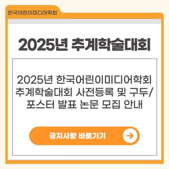 2025년 한국어린이미디어학회 추계학술대회 사전등록 및 구두/포스터 발표 논문 모집 안내