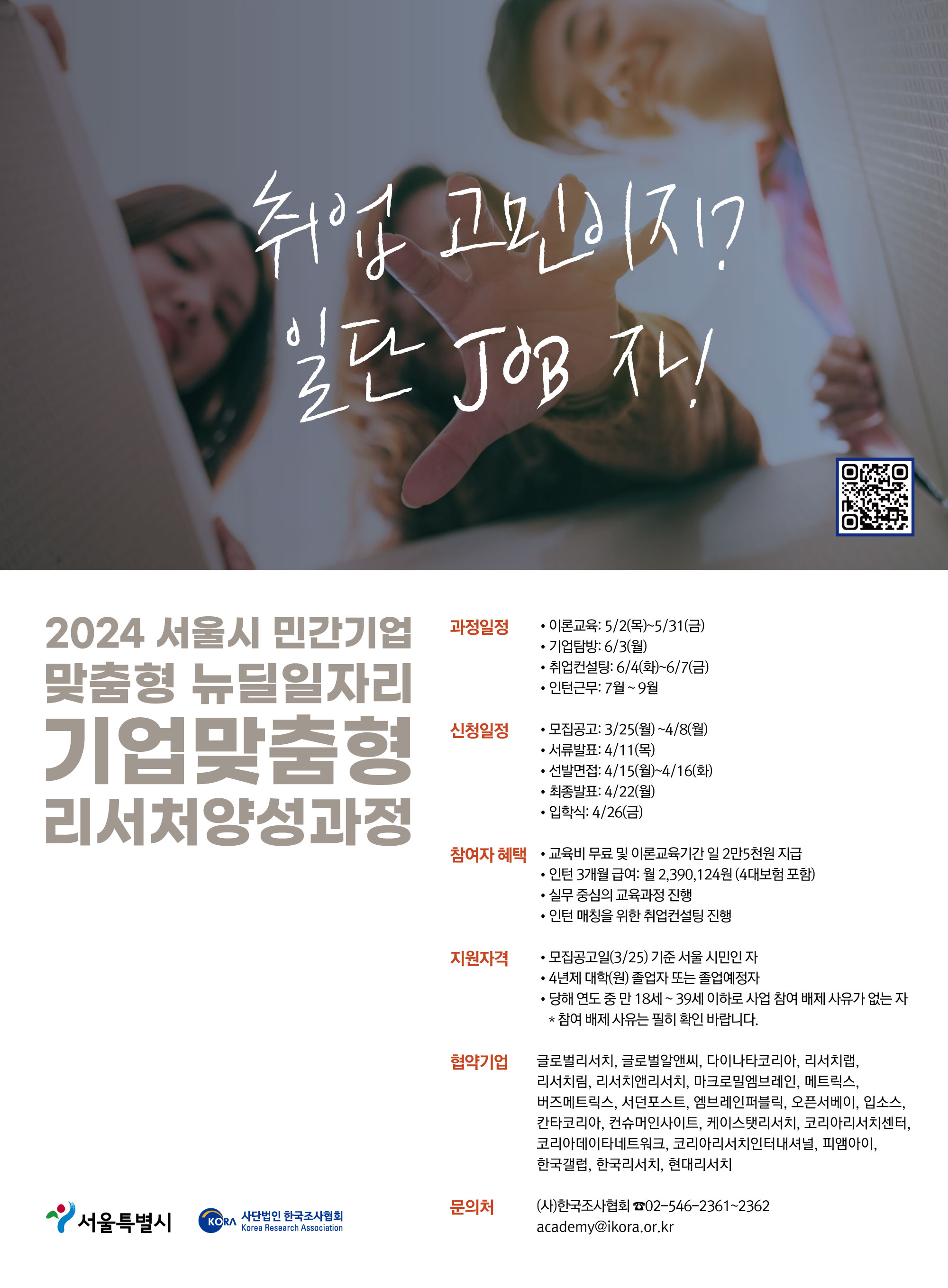 [모집]한국조사협회 2024년도 기업맞춤형 리서처양성과정 모집공고