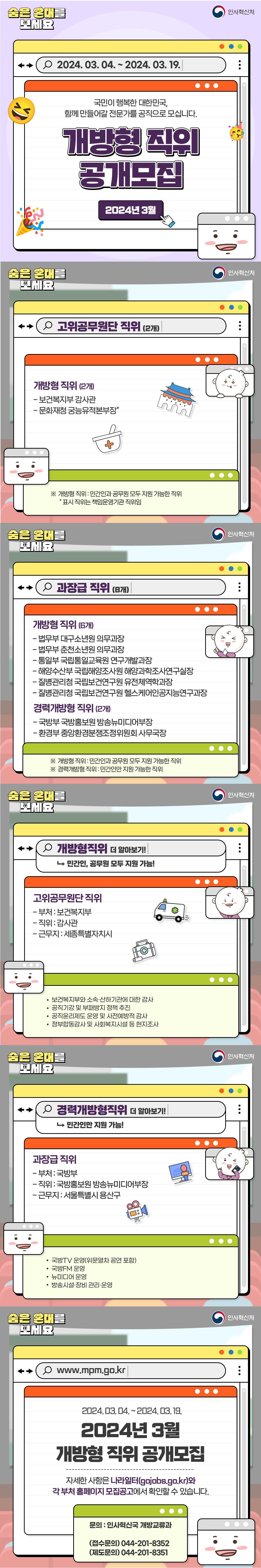 기타 문의는 인사혁신처 개방교류과 김상효 주무관(044-201-8352)에게 문의 바랍니다.