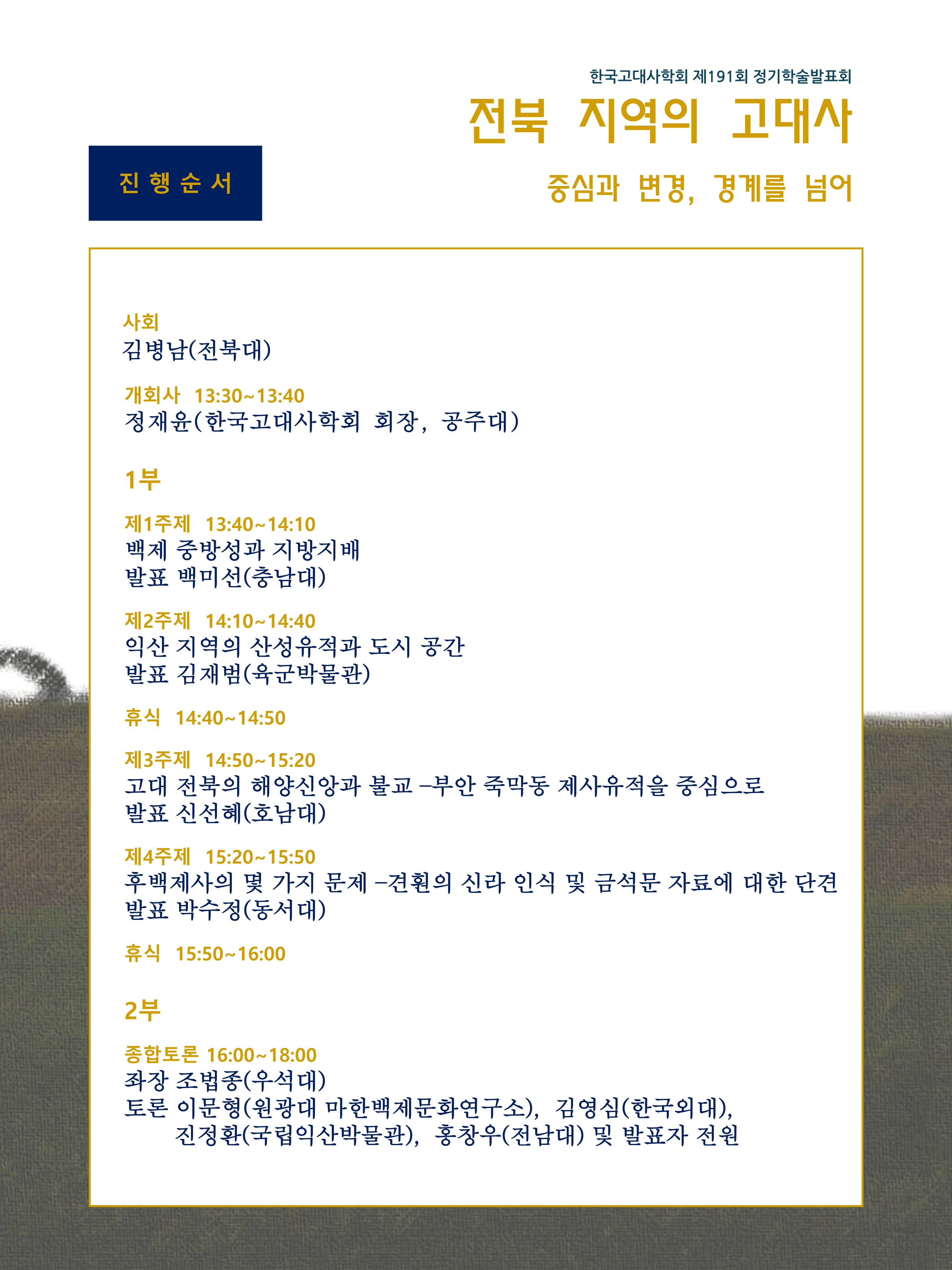 [공지] 한국고대사학회 제191회 정기학술발표회 안내