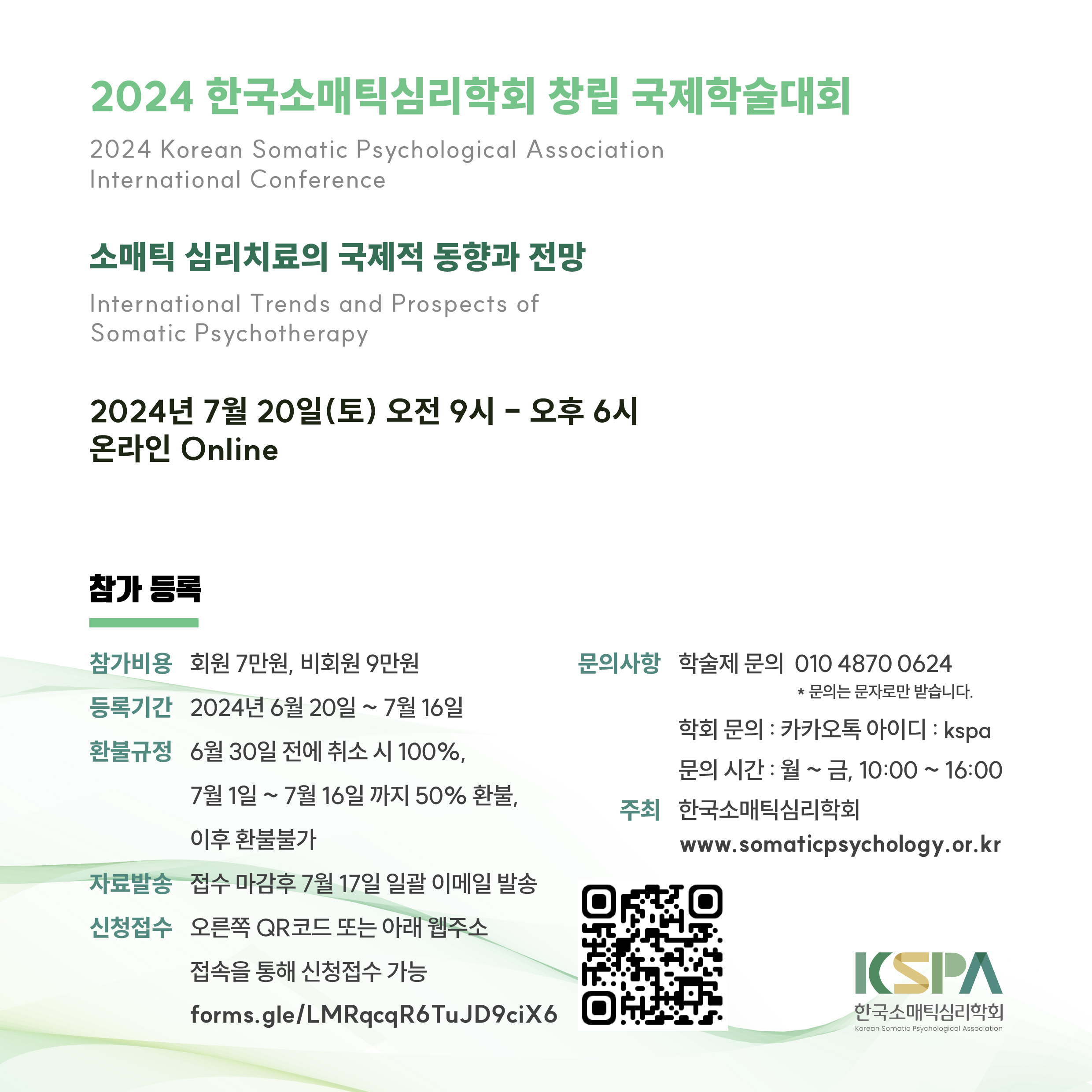 세계적인 연구자들과 임상가들이 한자리에 모이는 학술대회에서 여러분과 함께 소매틱 심리치료의 비전을 나눌 수있기를 희망합니다.