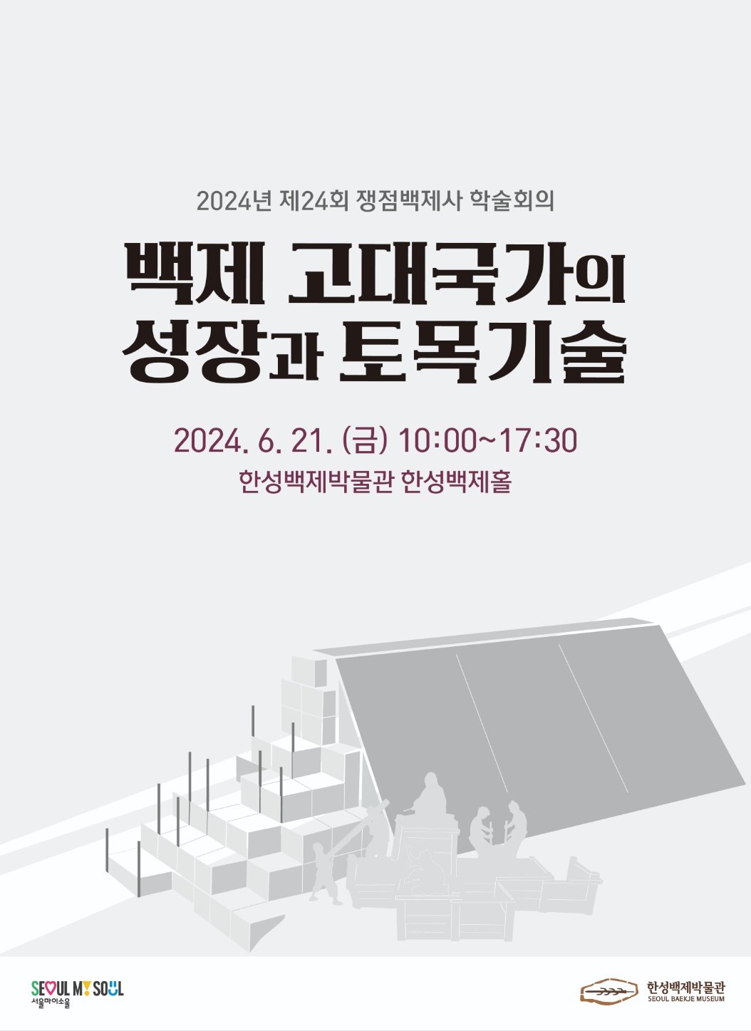 이번 학술회의는 "백제 고대국가의 성장과 토목기술" 이라는 주제로 2024.6.21.(금) 한성백제박물관 한성백제홀에서 개최됩니다.