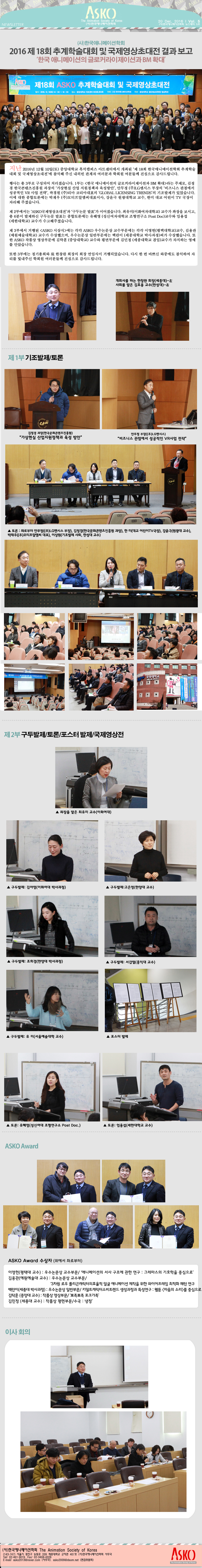 2016 제18회 추계학술대회 및 ASKO국제영상전 결과보고