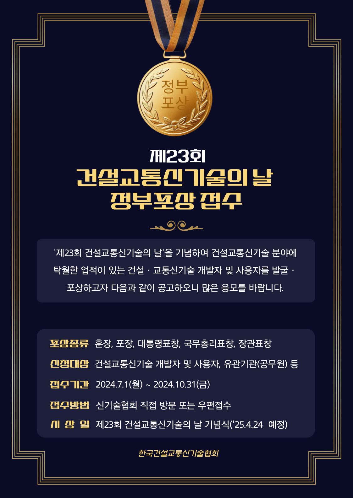 [한국건설교통신기술협회] 「제23회 건설교통신기술의 날」 유공자 포상 신청 안내