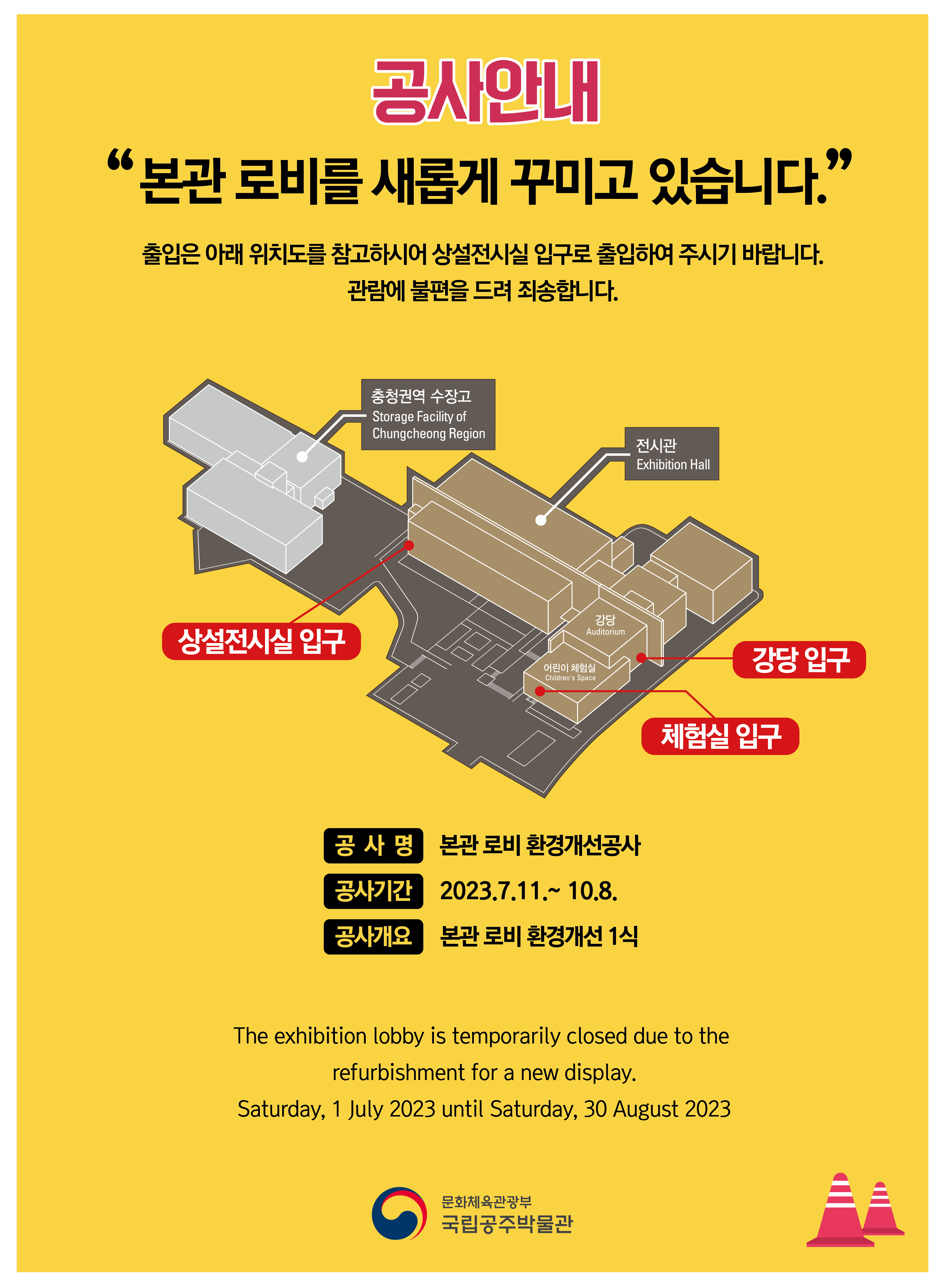 국립공주박물관에서 로비 공사를 진행 중에 있어 출입문이 변경되었습니다.