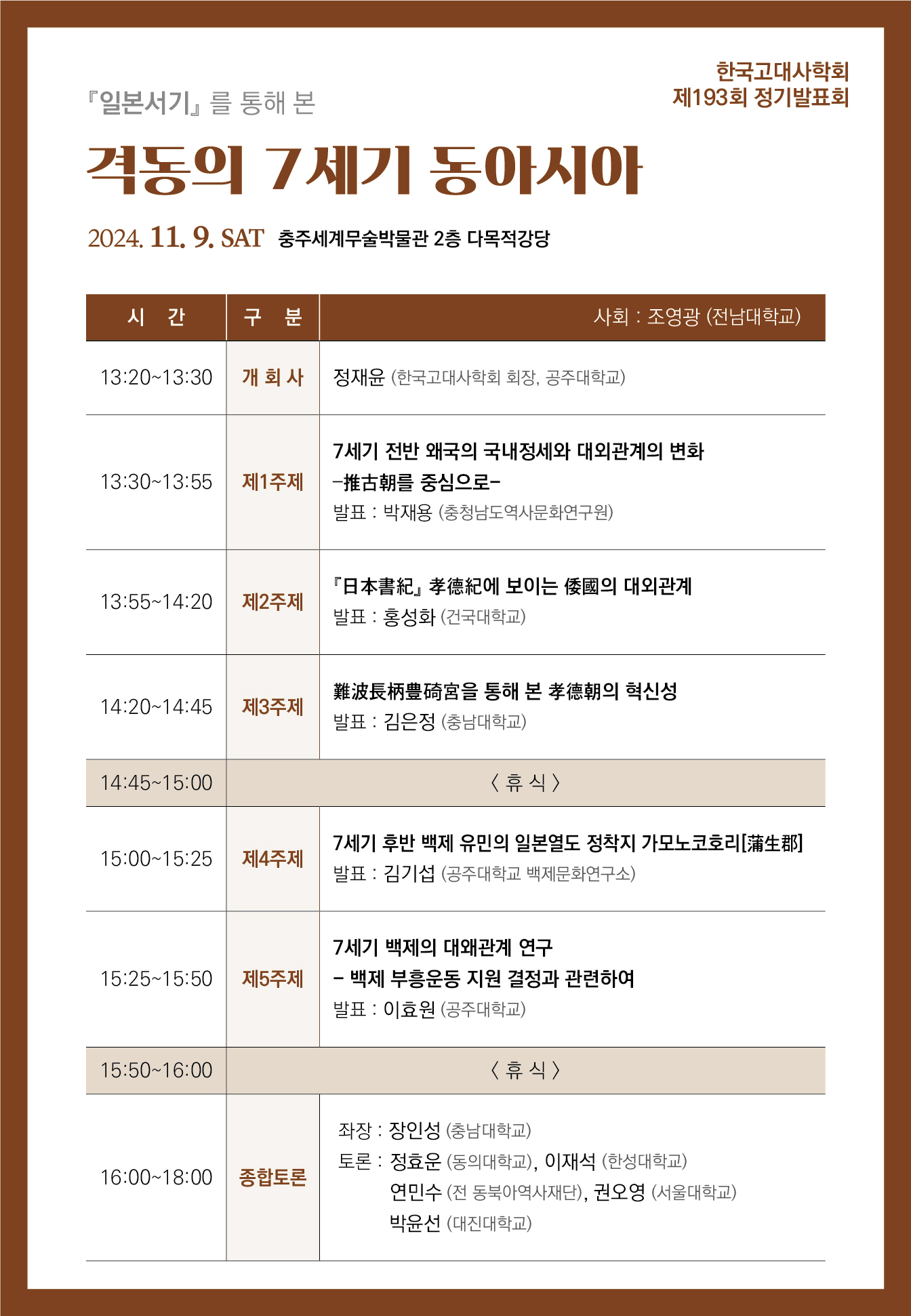 주제 : 『일본서기』를 통해 본 격동의 7세기 동아시아