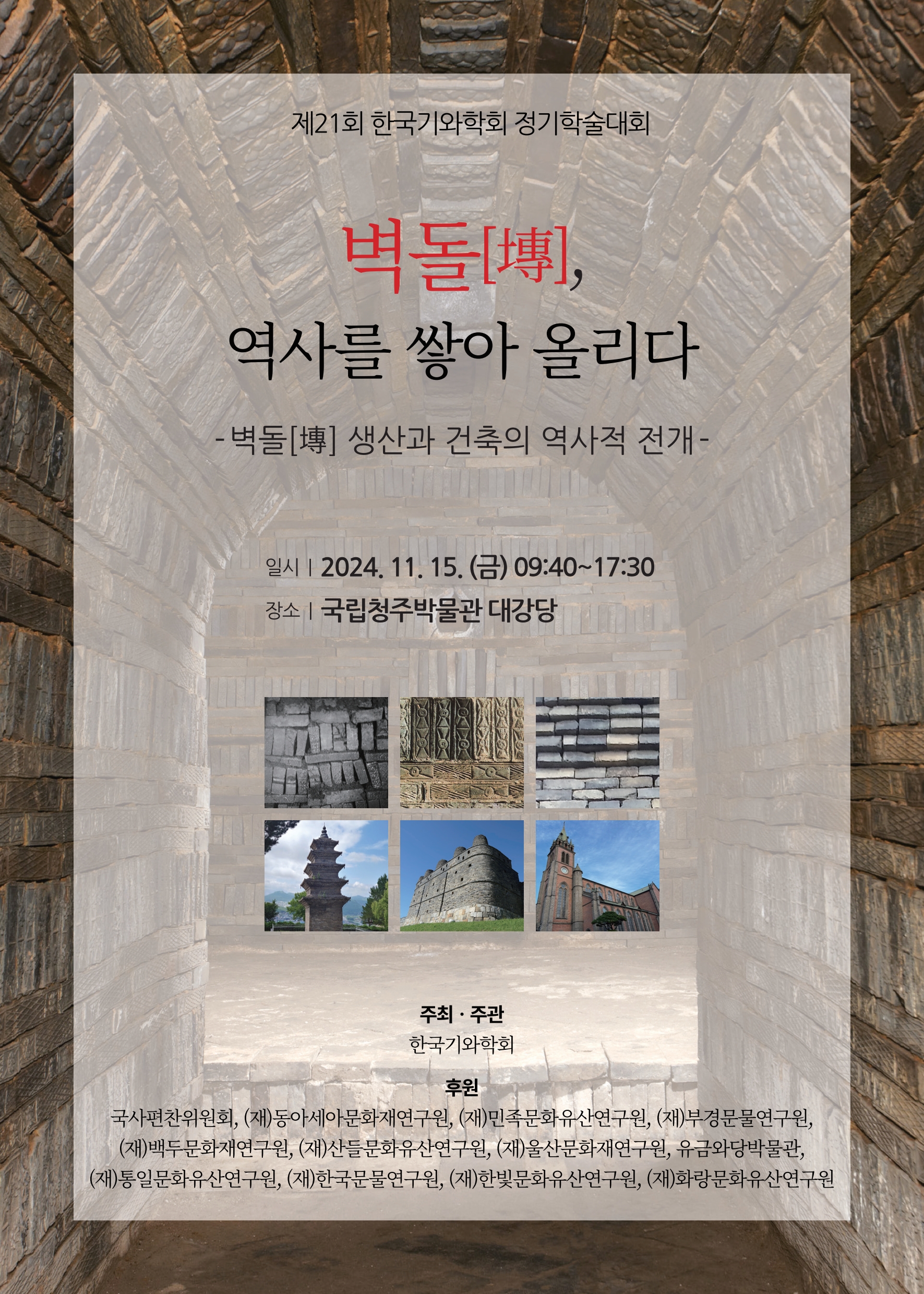 한국기와학회 제21회 정기학술대회 벽돌[塼],역사를 쌓아 올리다 -벽돌[塼] 생산과 건축의 역사적 전개- 개최