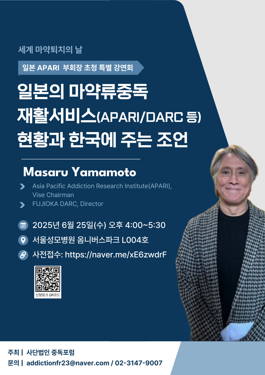 [사단법인 중독포럼] 일본 APARI 부회장 초청 특별 강연회_일본의 마약류 중독 재활서비스체계와 그 현황, 그리고 한국에 주는 조언