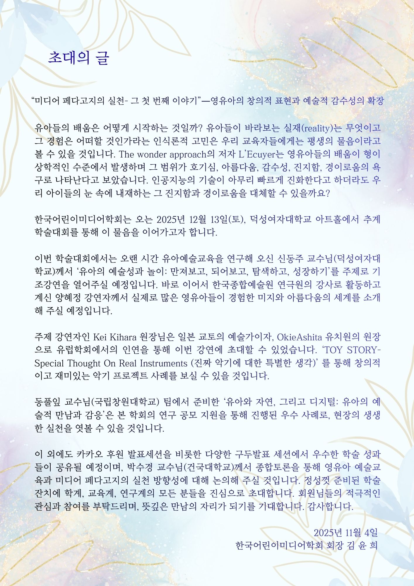 2025년 한국어린이미디어학회 추계학술대회 초대의 글