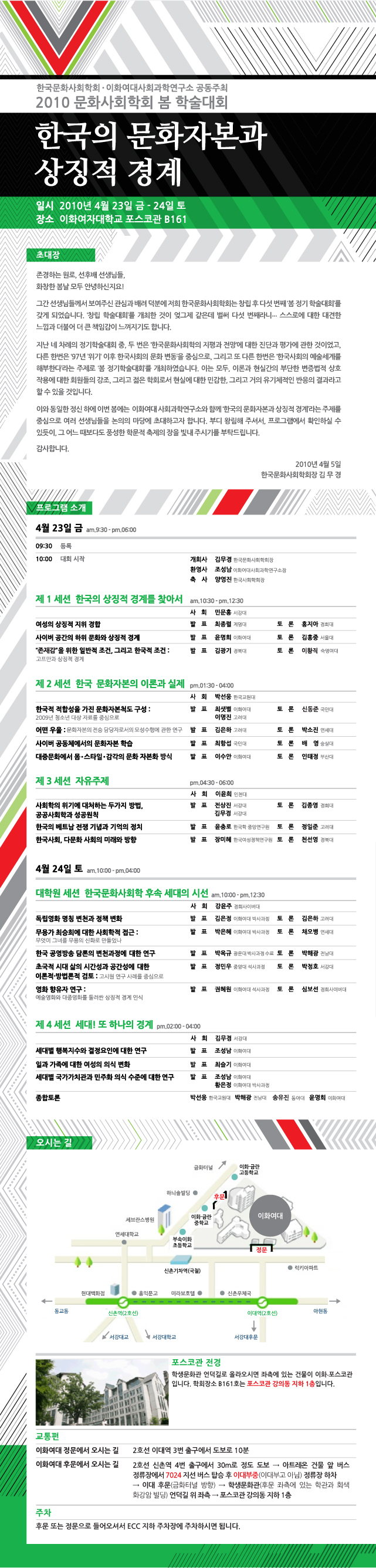 2010 한국문화사회학회 봄학술대회 (4.23-24/이화여대)