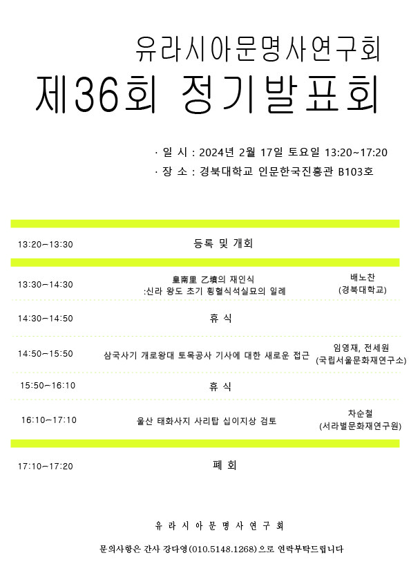 2024년 2월 17일 토요일, 유라시아문명사연구회 제36회 정기발표회가 진행될 예정입니다.