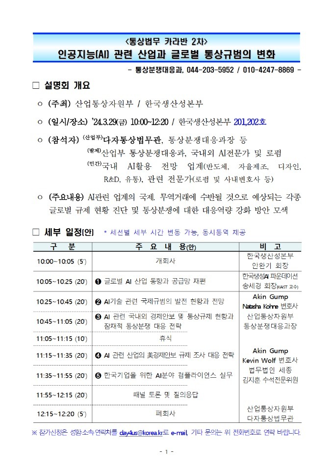 산업통상자원부에서 주최하는 인공지능(AI) 관련 산업과 글로벌 통상규범 변화 설명회를 아래와 같이 안내해 드립니다.