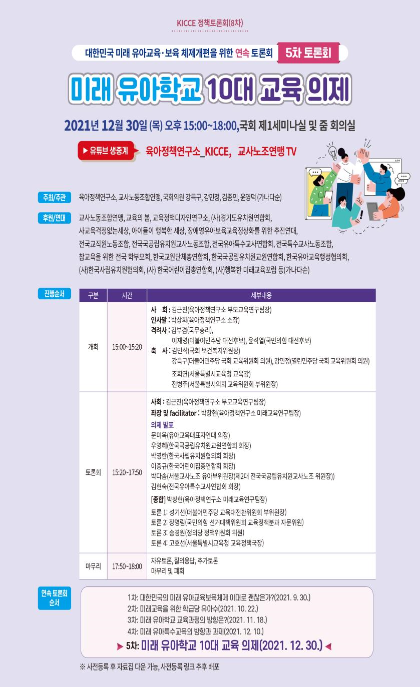 타기관, 육아정책연구소에서 진행하는 '미래 유아학교 10대 교육 의제- 토론회가 있어 알려드립니다.