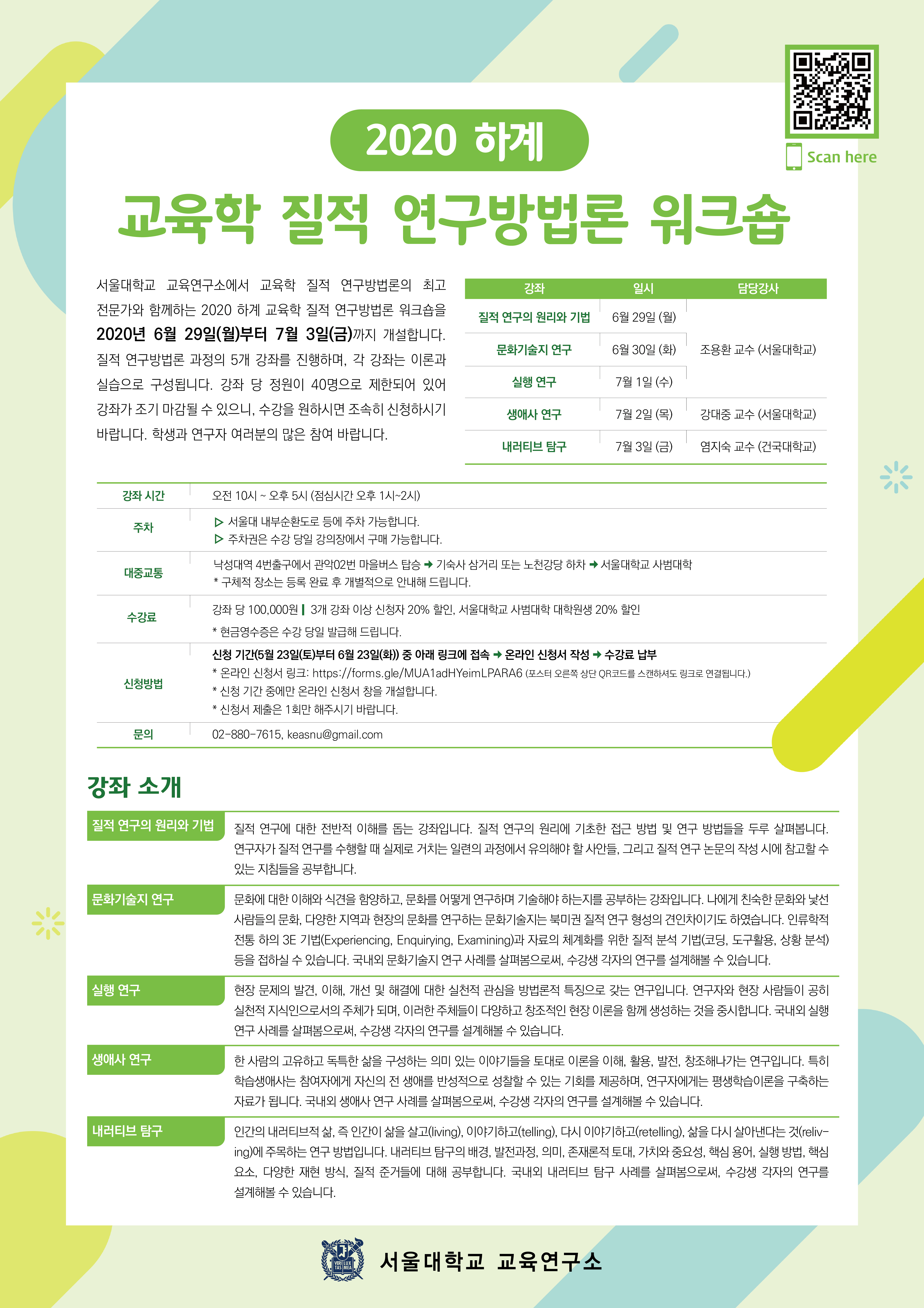 서울대학교 교육연구소에서 개최하는 워크숍을 안내해 드립니다.