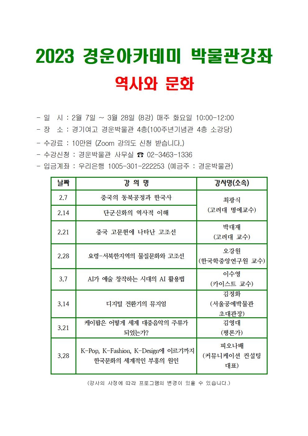 2023년 경운아카데미강좌 '역사와 문화' 를 준비하였습니다.