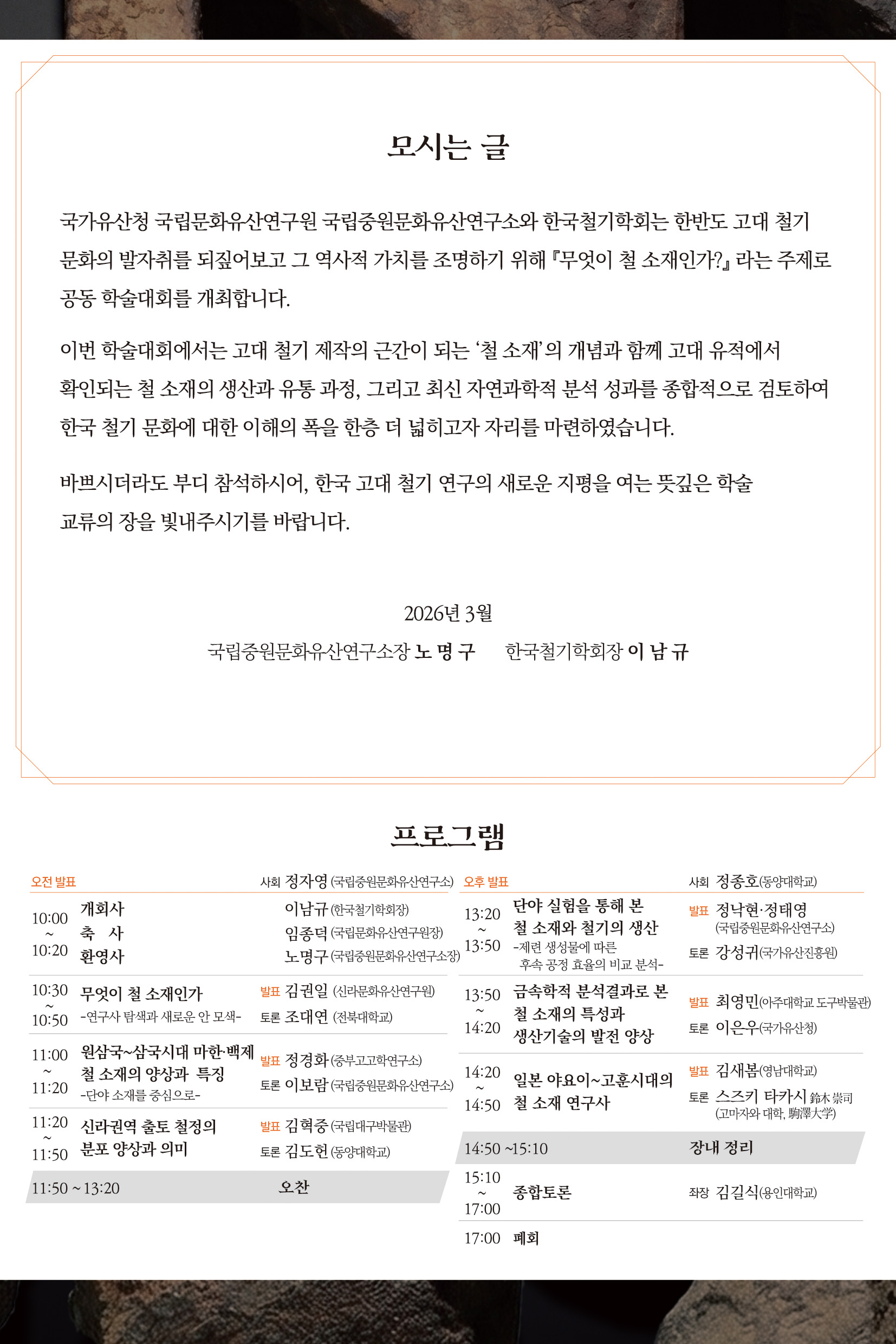 [한국철기학회] 2026년 국립중원문화유산연구소·한국철기학회 공동학술대회 안내