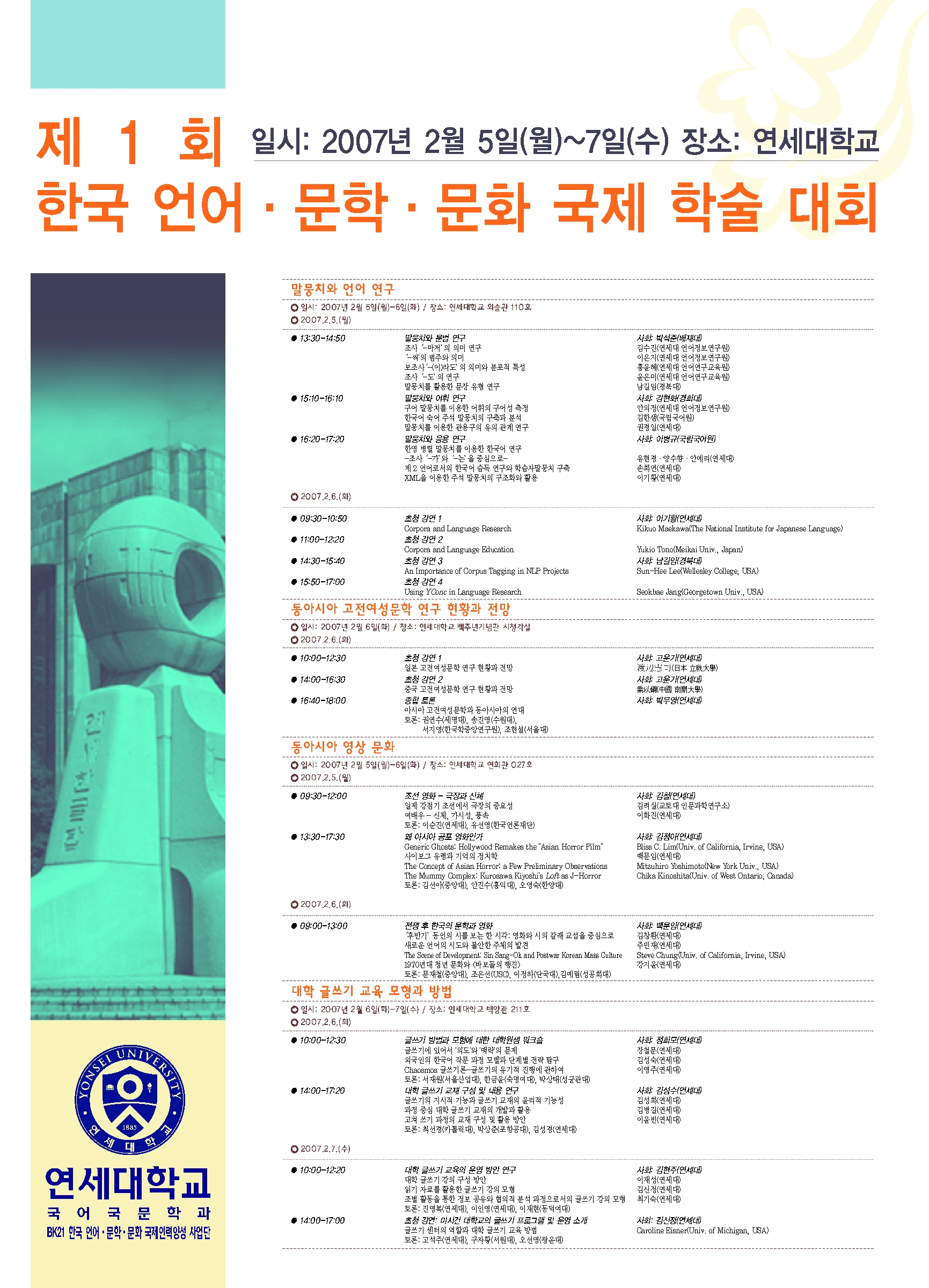 '말뭉치와 언어 연구' - 2007.2.5.-6. 연세대학교 외솔관 110호
