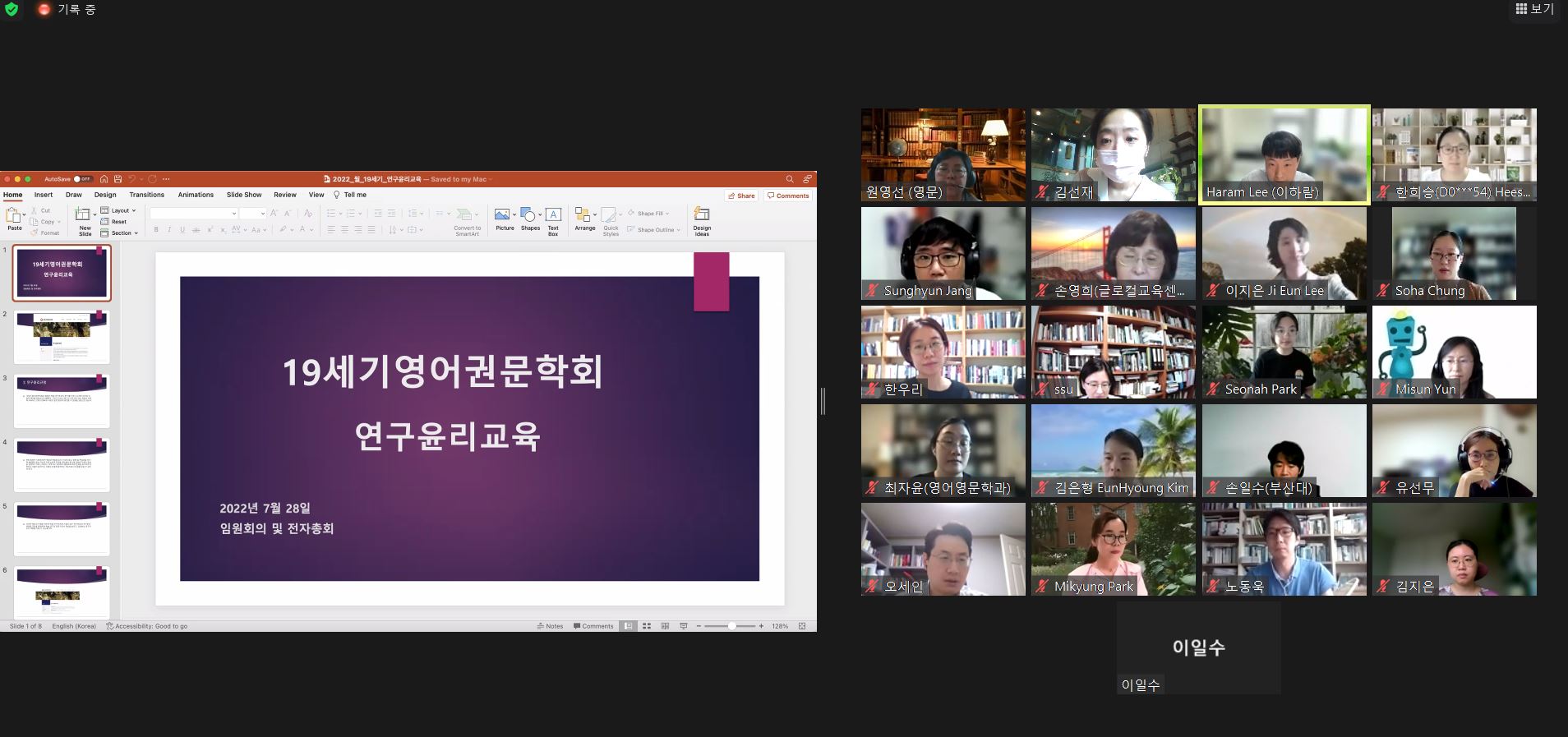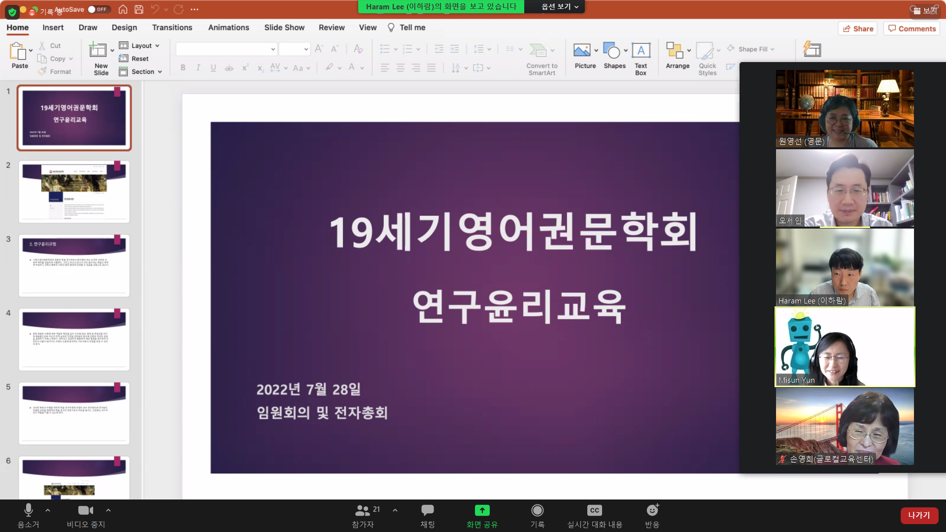 2022년 7월 전체 임원 모임을 진행하며 윤리교육을 실시하였습니다.