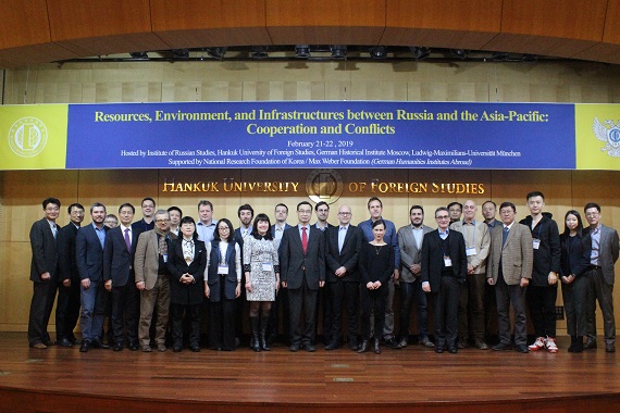 러시아연구소는 2019년 2월 21-22일 양일에 걸쳐 우리학교 미네르바 컴플렉스 국제회의실과 명동 토마스호텔에서 독일 막스베버재단과 한국연구재단의 후원으로 독일역사연구소(모스크바 지부), 독일 루드비그-막시밀리안스대학교와 공동으로 'Resources, Environment, and Infrastructures between Russia and the Asia-Pacific: Cooperation and Conflict' 라는 주제로 인문한국(HK) 국제학술회의를 개최했다.