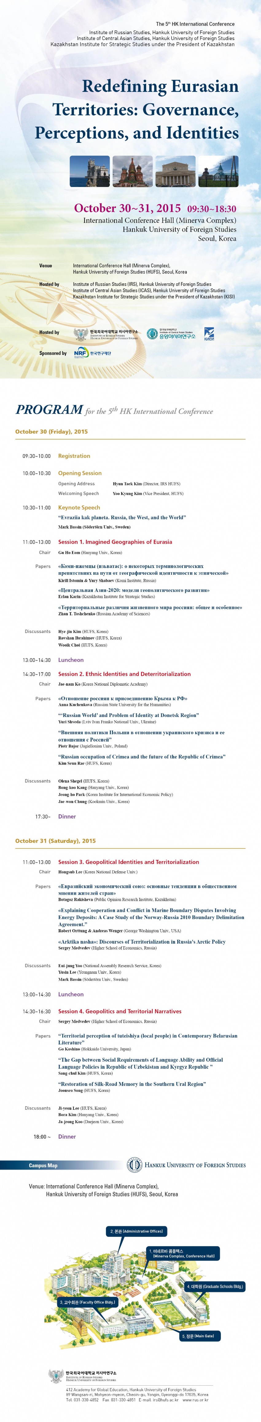 HK 제5차 국제학술회의-Redefining Eurasian Territories: Goverance, Perceptions, and Identities