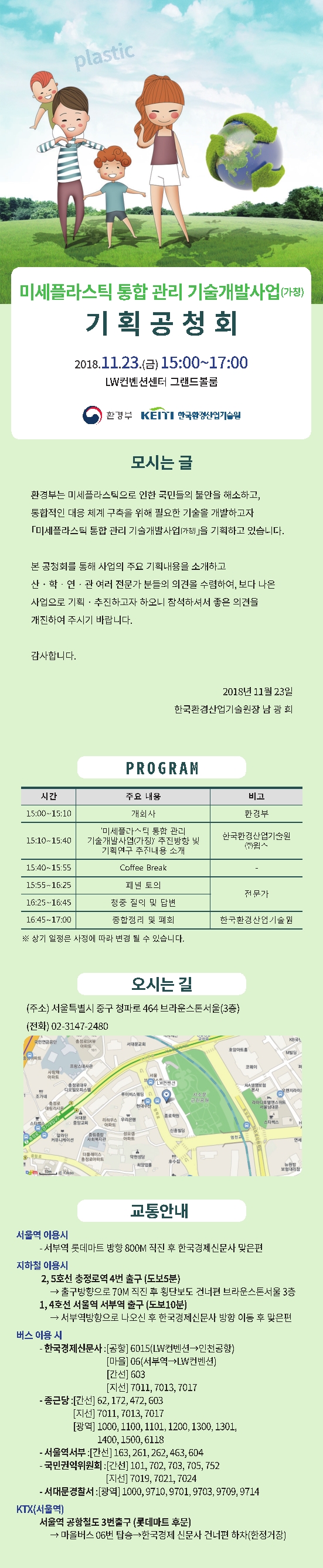 <미세플라스틱 통합 관리 기술개발사업(가칭) 기획 공청회 안내>
