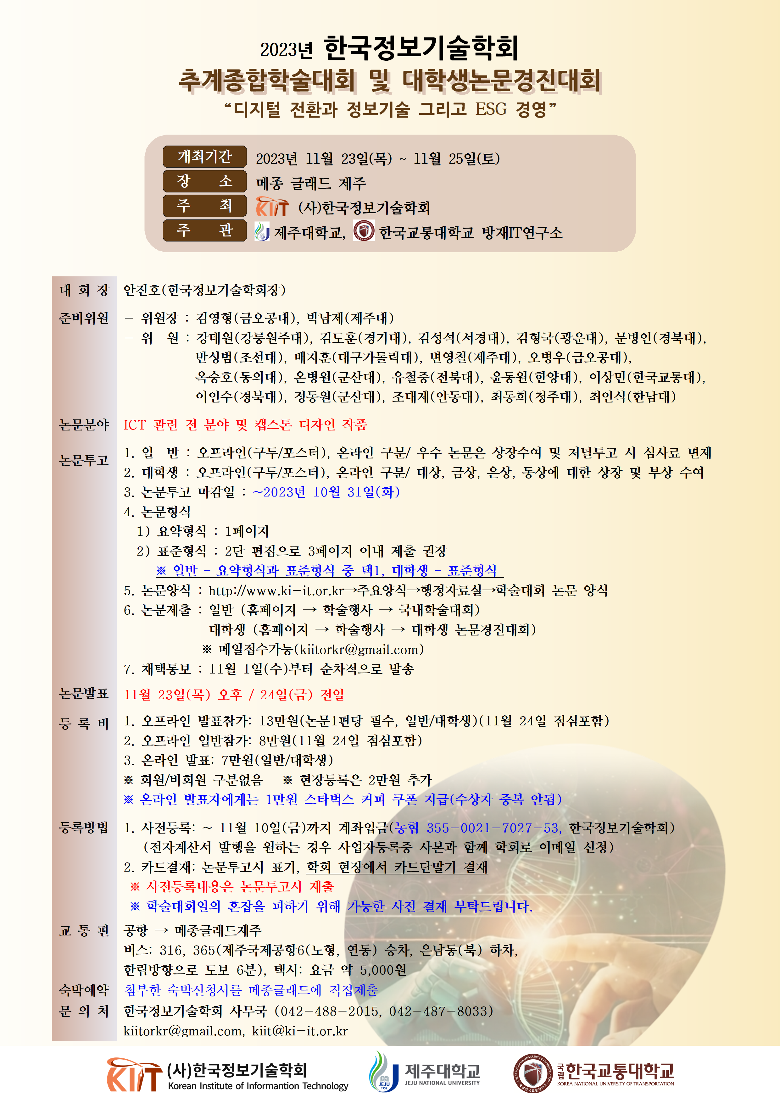 2023년 추계종합학술대회 및 대학생논문경진대회 안내_논문양식, 숙박신청서 첨부